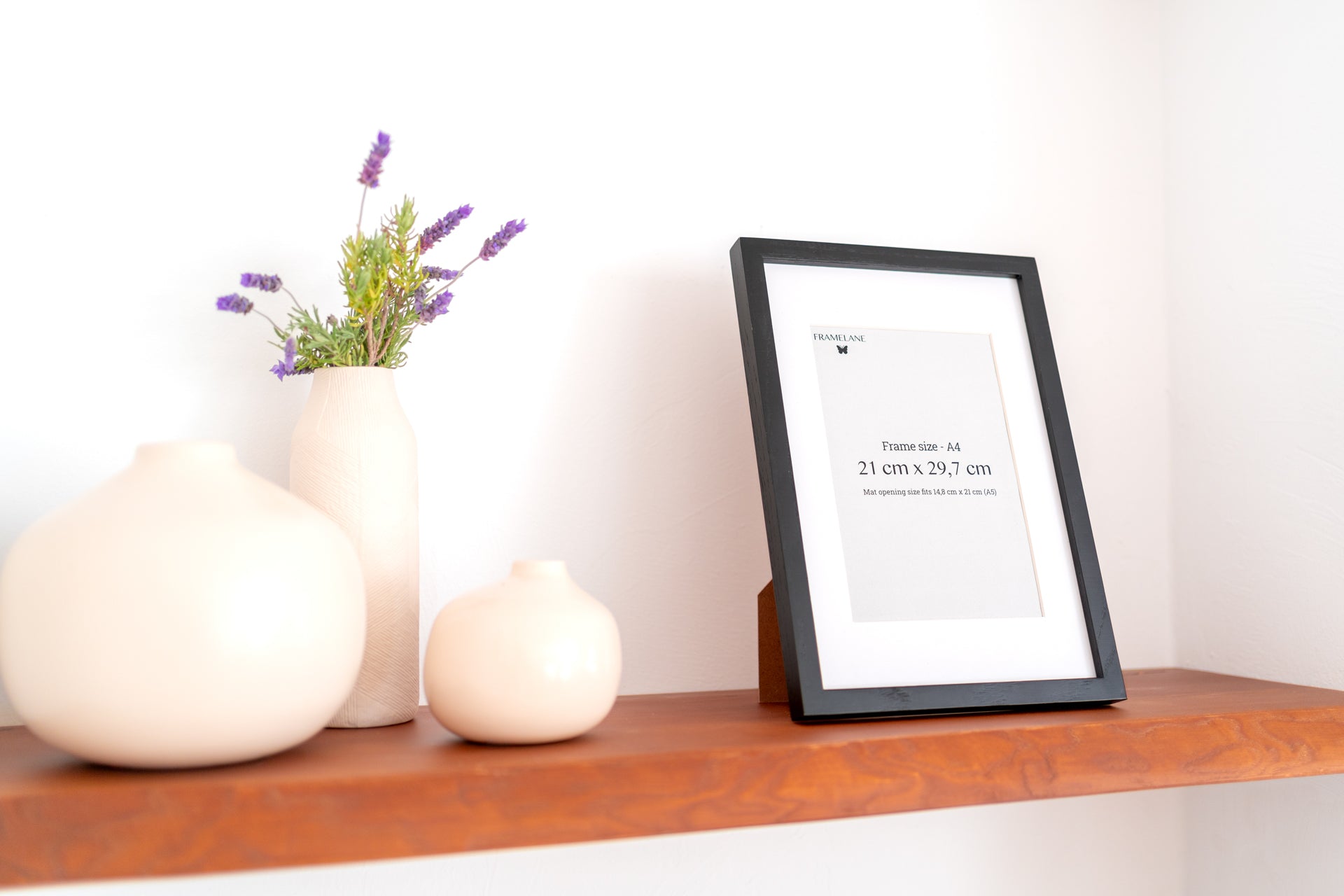 Embrace your memories with this stylish, eco-friendly 21x29.7 cm (A4) solid black oak wood frame set.