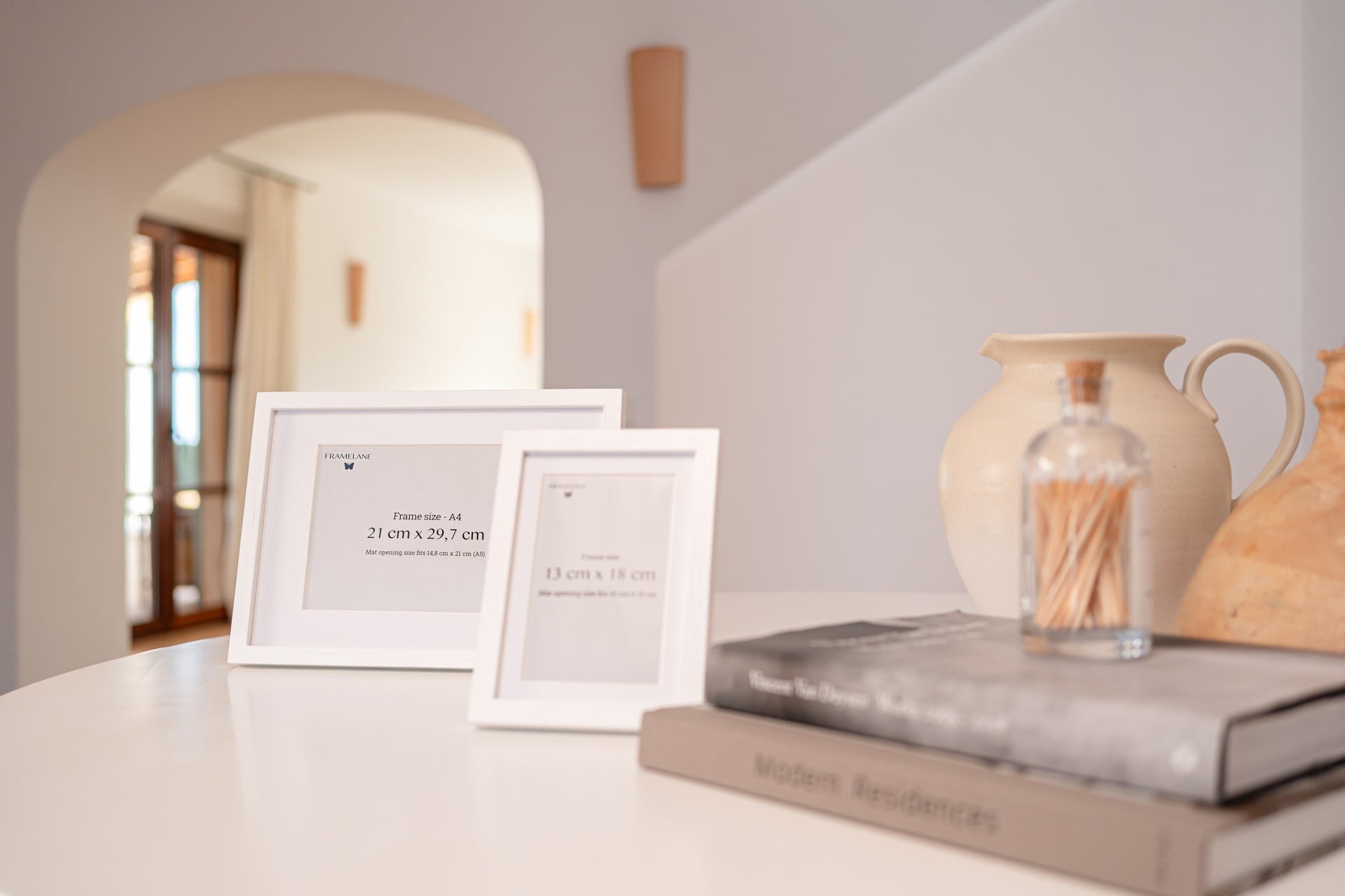 • A removable 14.8x21 cm (A5) white acid-free mat board, also known as a passepartout, that provides two size options while adding a sophisticated touch.
