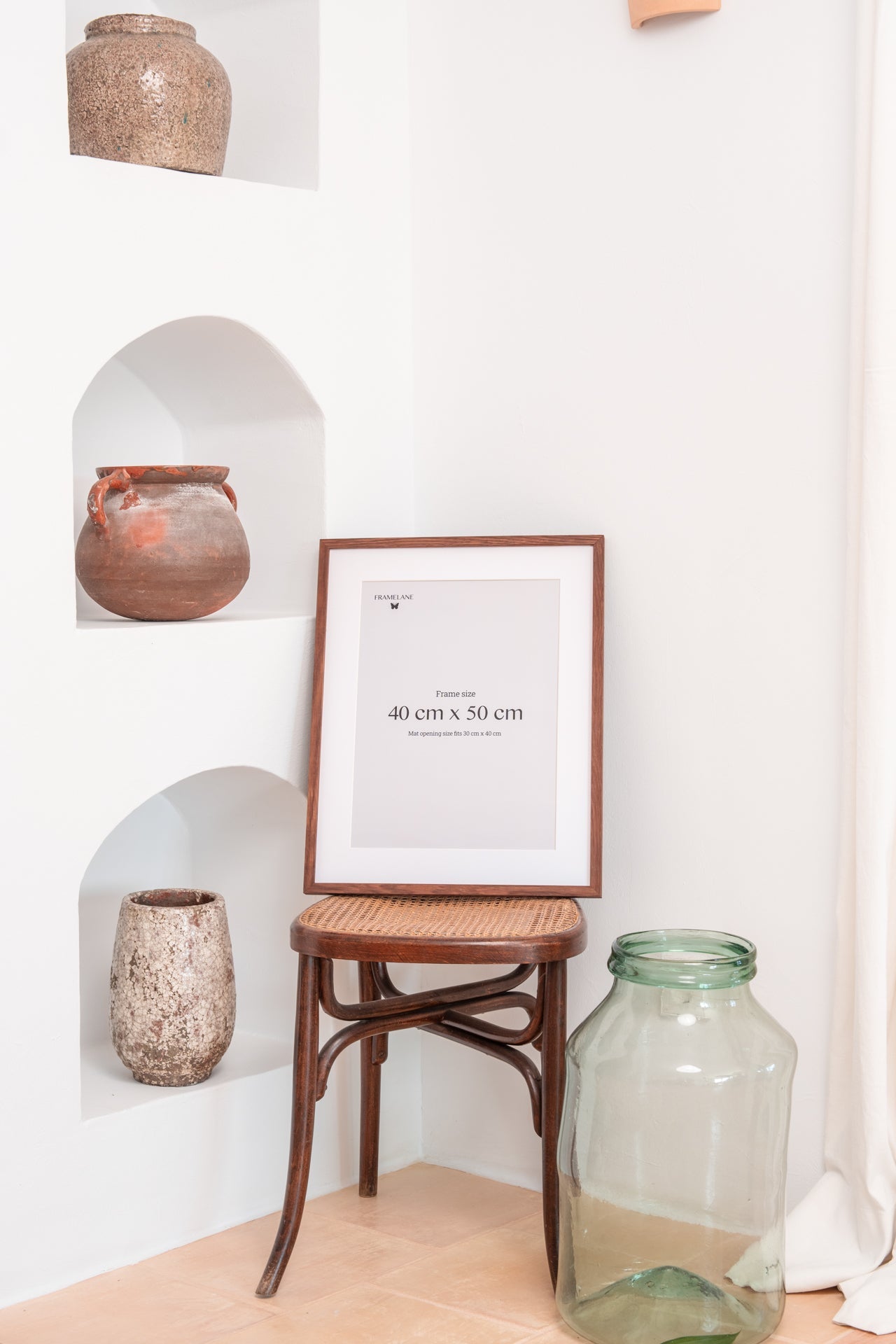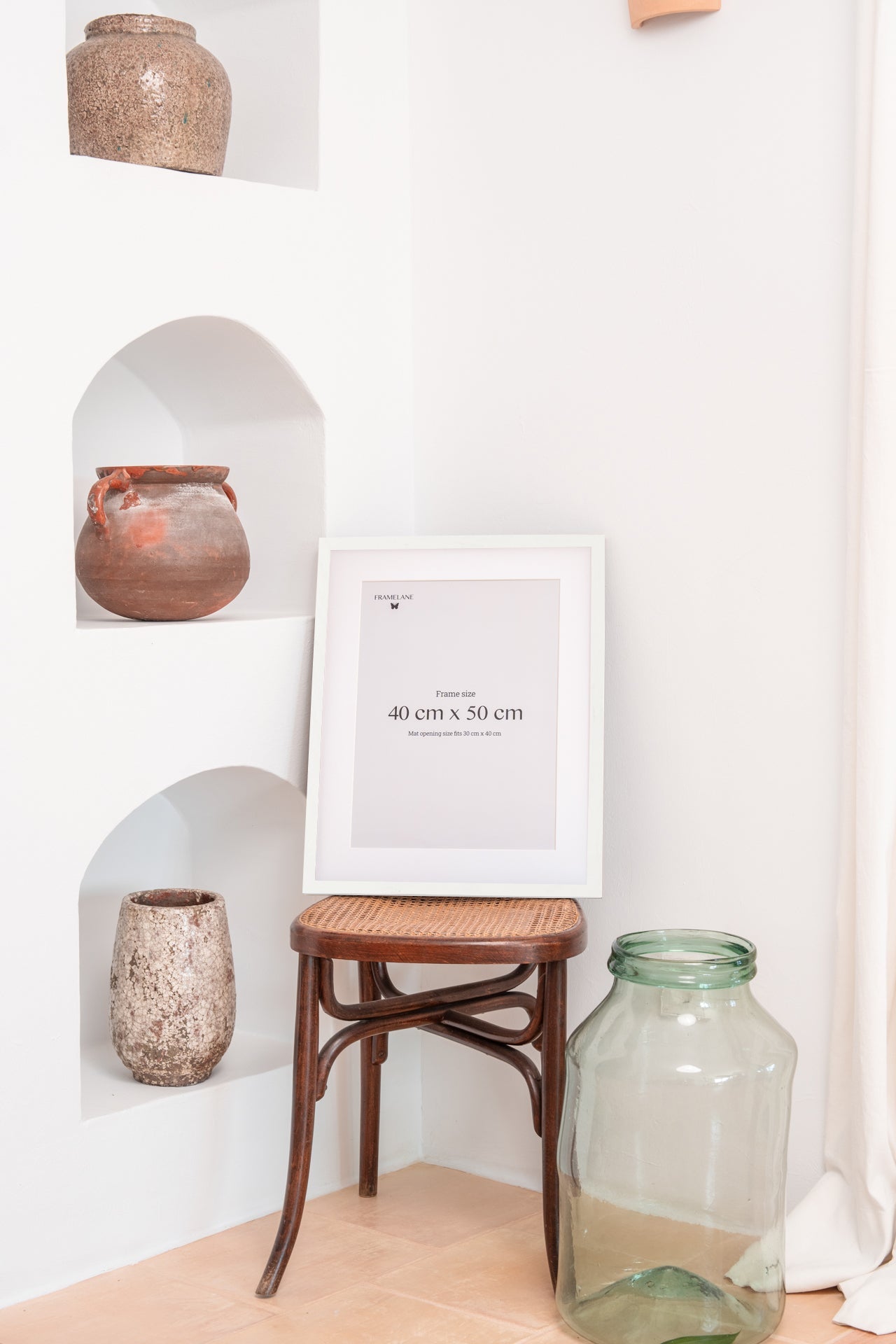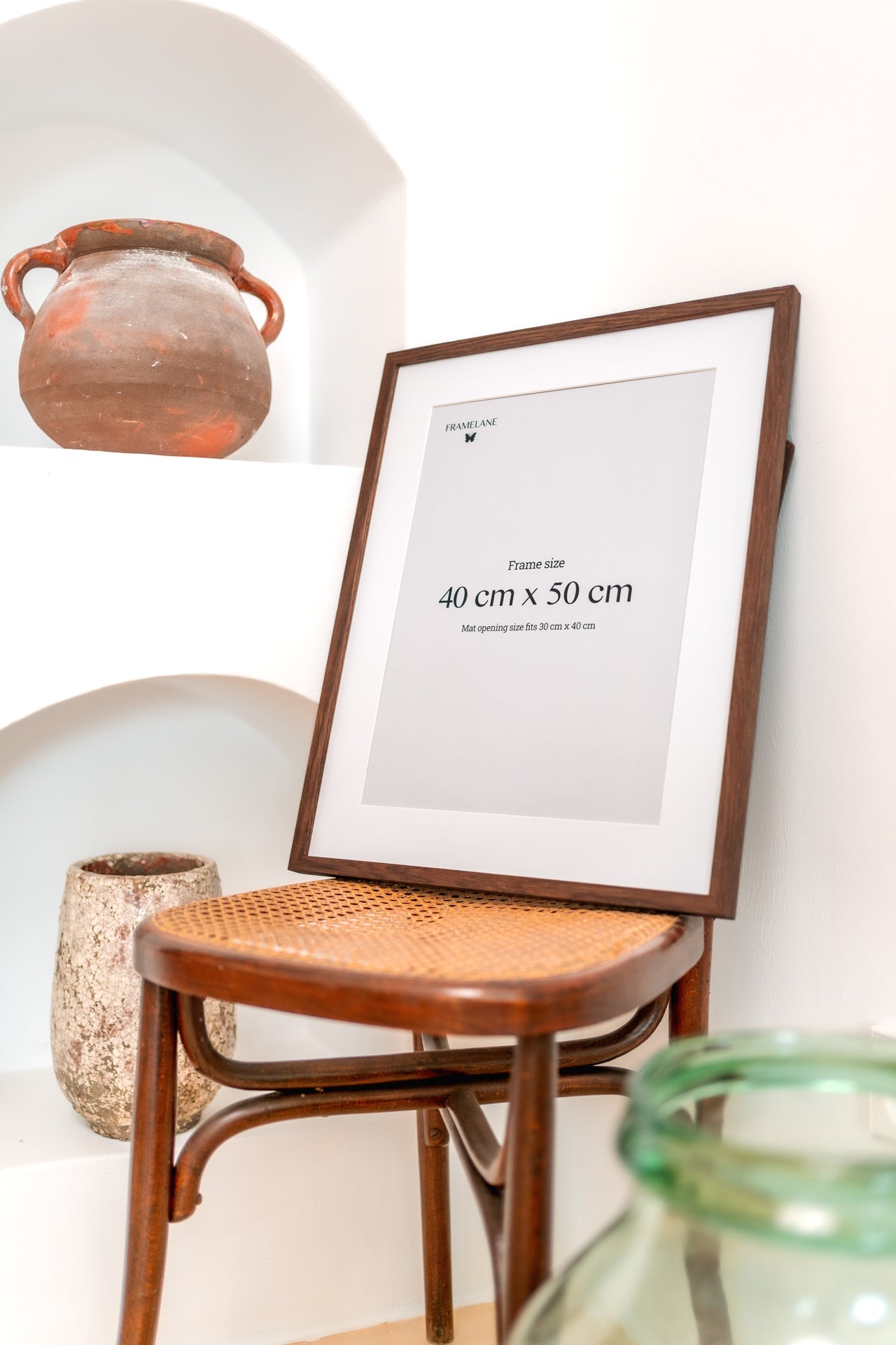 • A removable 30x40 cm white acid-free mat board, also known as a passepartout, that provides two size options while adding a sophisticated touch.