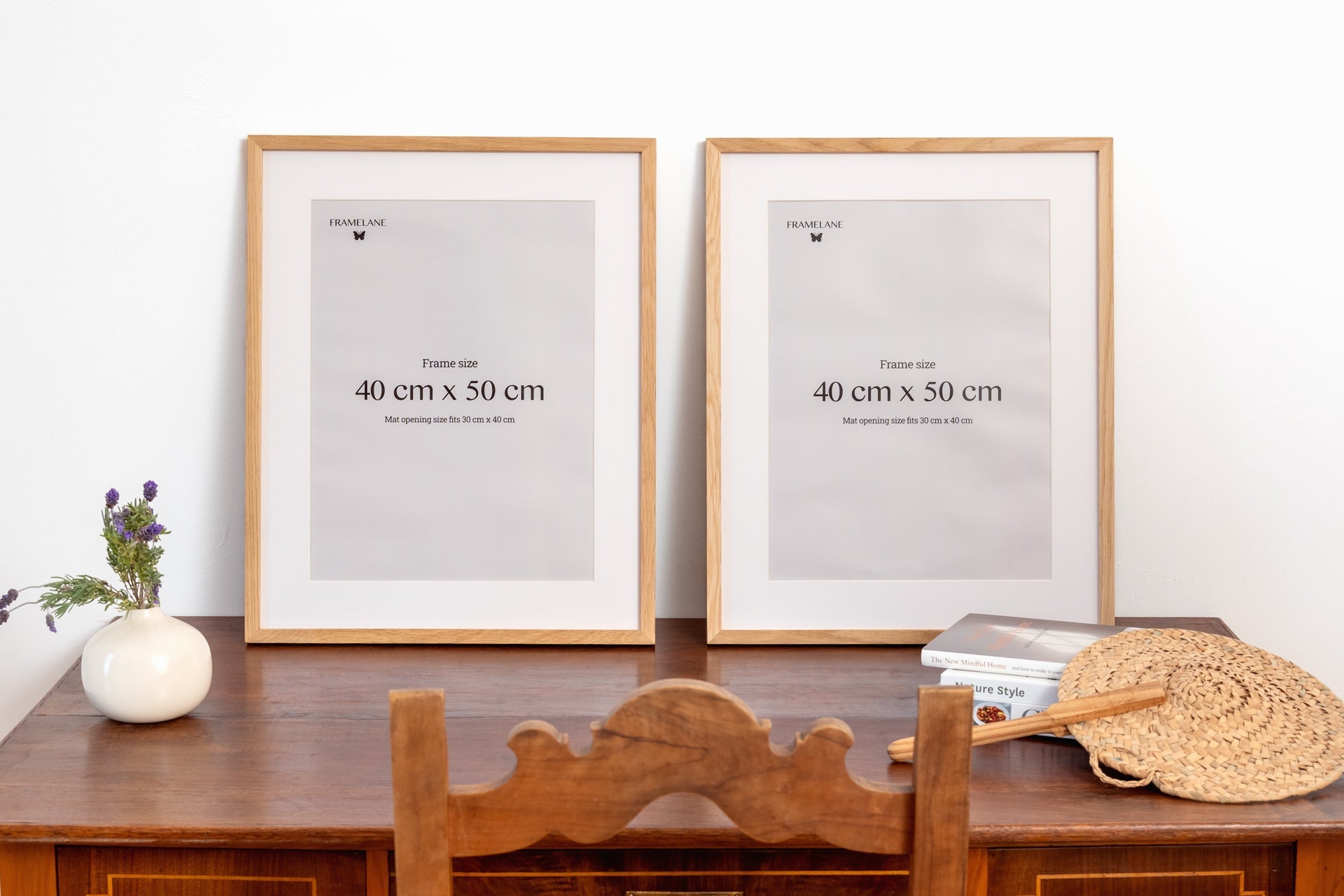 This set of 2 frames is made of 100% natural solid oak wood, meaning that the organic characteristics of the material may cause slight hue changes over time. While we strive to present our products with the utmost precision, we encourage you to embrace the unique charm of our wooden frames and the possible color variations between different batches of the same natural oak wood.